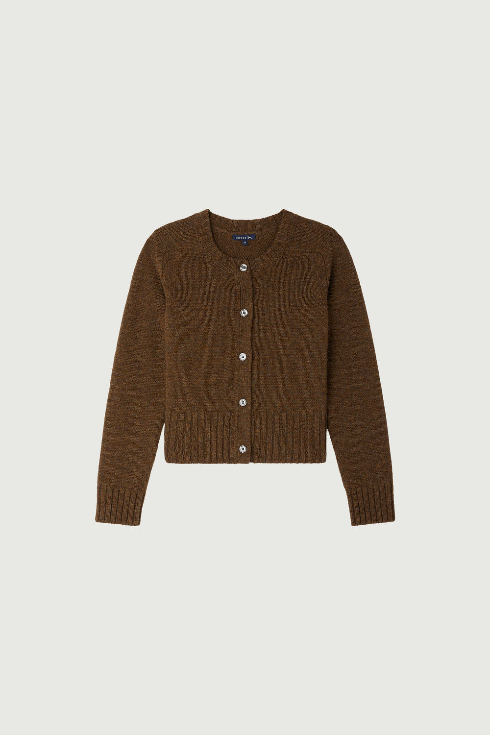Short Alpaca and Wool Cardigan mottled brown