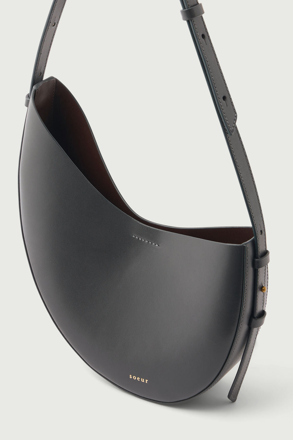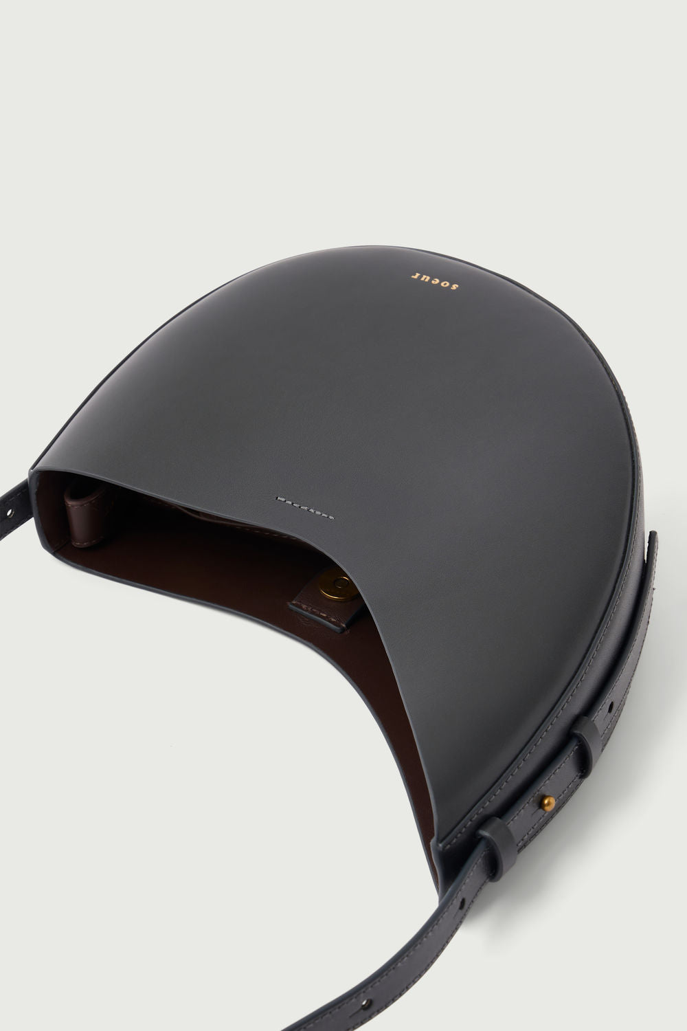 - Removable lambskin pouch inside the bag and secured with a snap button